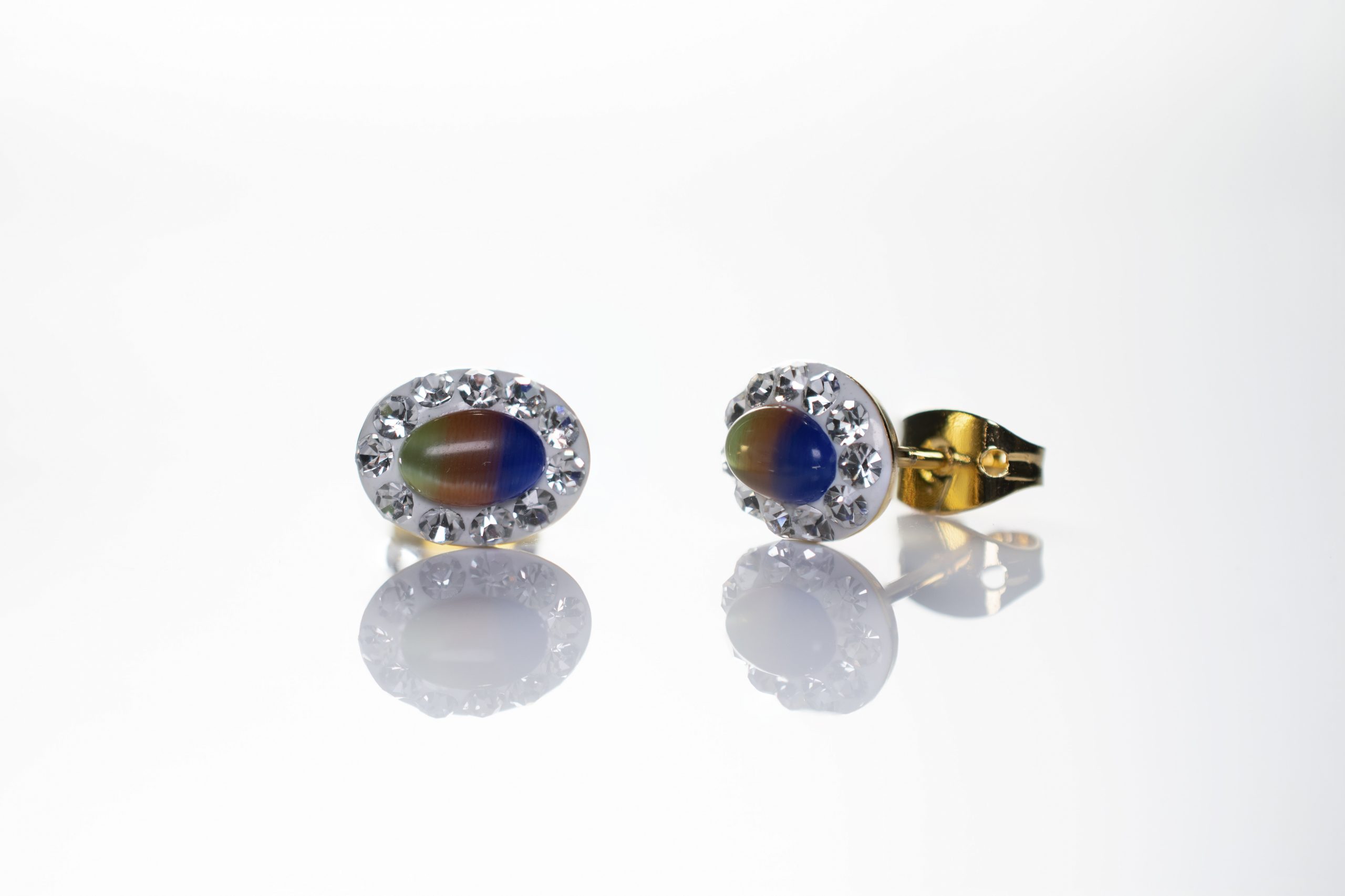 Arete en Forma Ovalada de Color Azul con Piedras $104.00