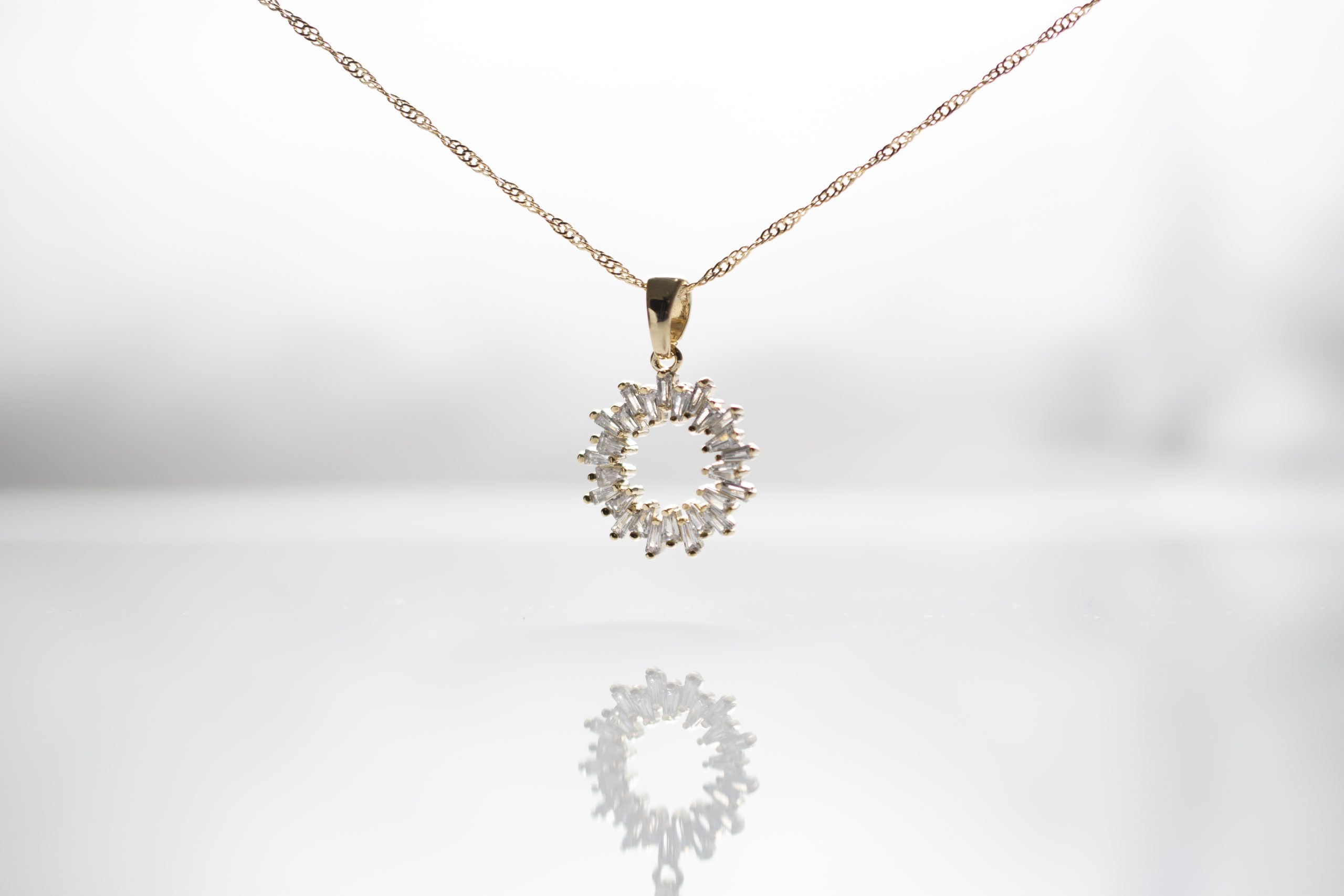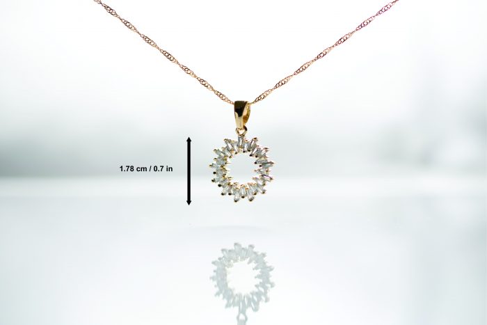 - Collar con dije colgante en forma circular decorado con cristales finos.